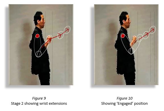 From the artificially placed ‘launch’ position, the fist continues to be ‘pushed’ forwards by muscle propulsion to a final position where the arm is ‘locked’ out and the elbow ‘pops, as shown in Figure 14 below.