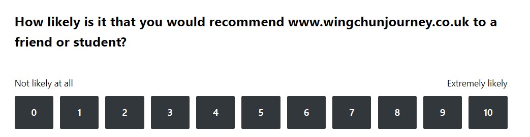 A Rating pop-up has been added in 2024 and will appear on the Home page (or landing page). Please take a moment to provide your feedback on this site. It will really help make wingchunjourney.co.uk a better place for our community!