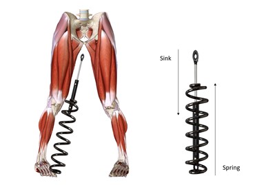 The lower limb chain system allows the co-ordinated anti-gravity muscles to work in a spring-like action to cushion the effects of gravity on the lower limbs. This is shown in the diagrams below.