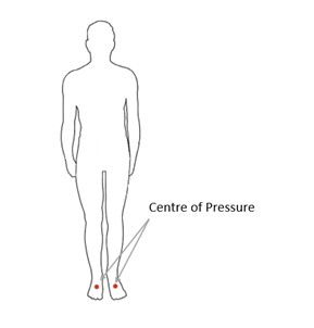 In addition to the concept of centre of gravity, it is also important to understand the centre of pressure. This is the point location of the vertical ground reaction force vector. It represents a weighted average of all the pressures over the surface of the area in contact with the ground.